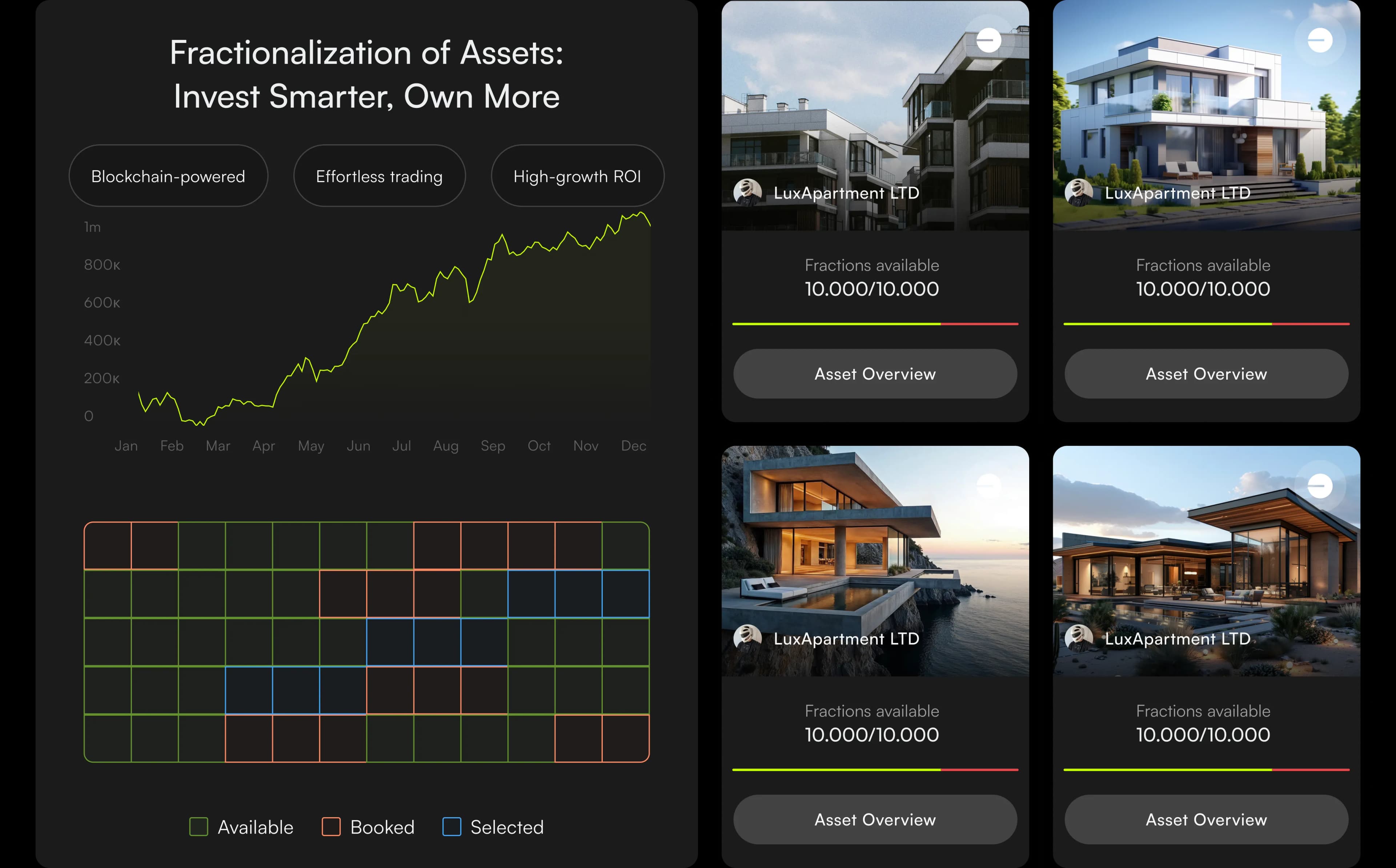 With blockchain-powered tokenization, we empower businesses to unlock liquidity and investors to own fractions of real estate, commodities, and fine art—effortlessly.